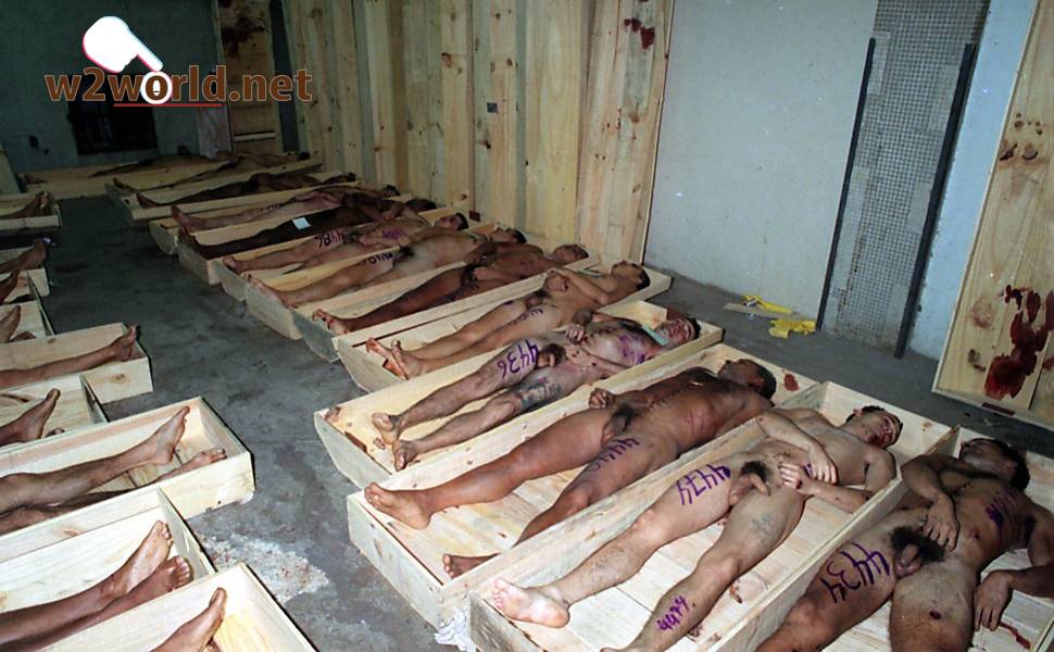 Compilation of several nude male corpse photos with exposed penises