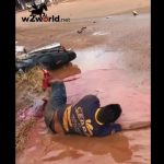 The motorcyclist lost a leg in the accident and is in great pain awaiting help.